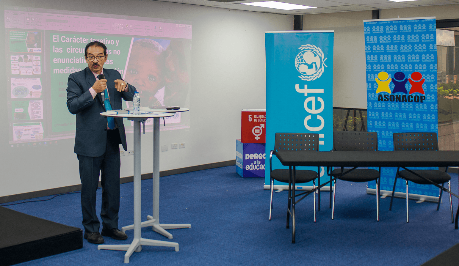 Esta actividad se inició con palabras de apertura por parte de la Dra. Lily Torres, presidenta de ASONACOP, quien dio cifras de las atenciones realizadas por los Consejos de Protección de Niños, Niñas y Adolescentes, como garantía de la restitución de los derechos humanos a la niñez y adolescencia en el ejercicio de sus funciones, le siguió en el saludo el excelentísimo señor, Abubacar Sultán, representante de UNICEF Venezuela, realizando un reconocimiento al trabajo realizado.